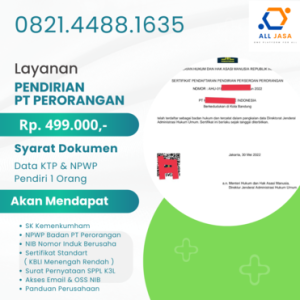 Meta Description: Jasa Pendirian PT Perorangan di Kabupaten Bandung Barat (KBB) hanya Rp 499rb. Proses Cepat 1-2 Hari, Bisa Ikut Tender & Buka Rekening Bank. Hubungi Allpedia 082144881635.